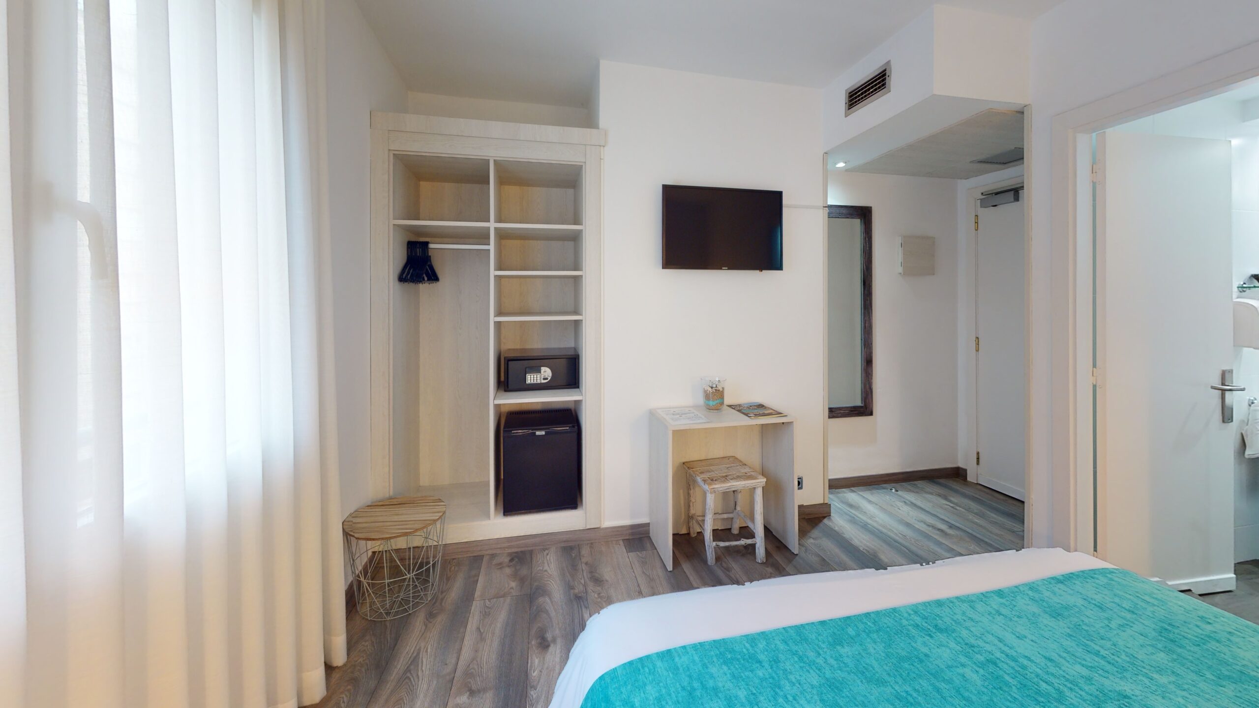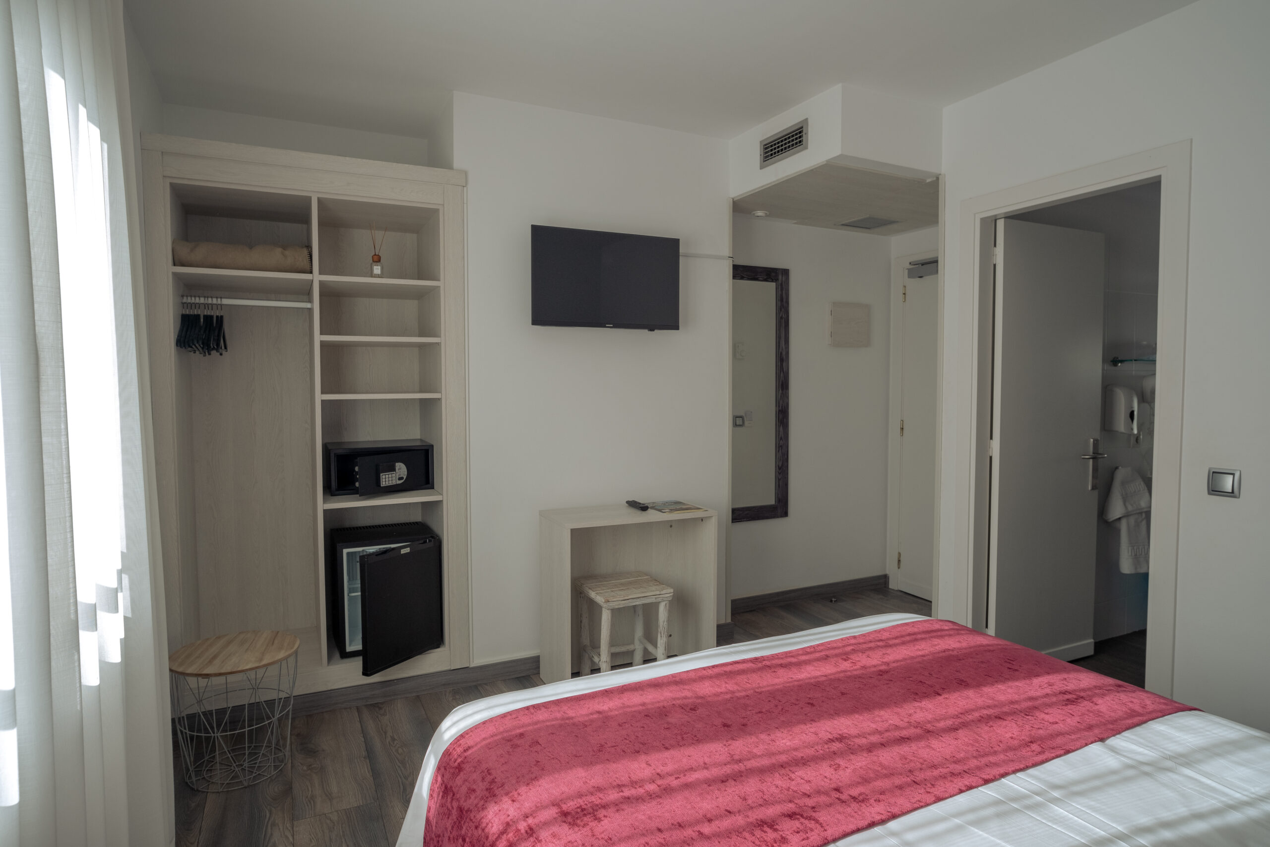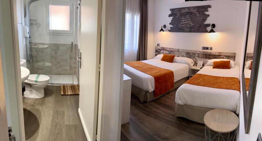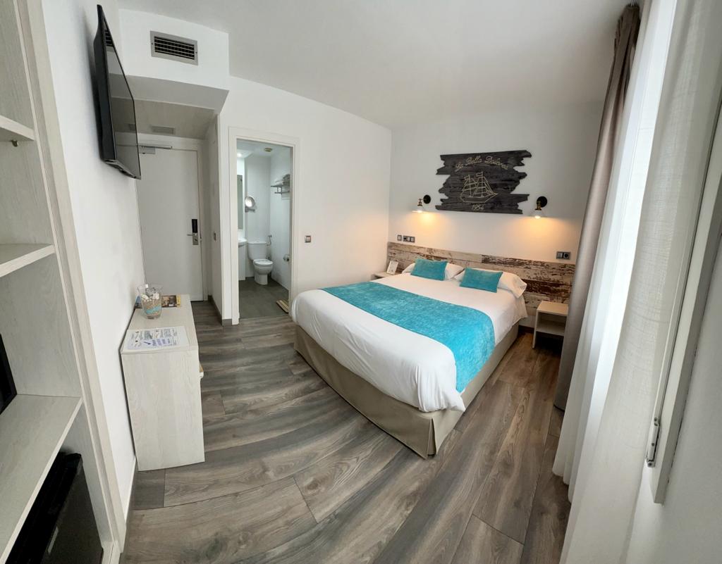 Habitación Doble con capacidad máxima de 2 adultos. Baño privado con columna de ducha . La habitación dispone de caja fuerte y minibar.