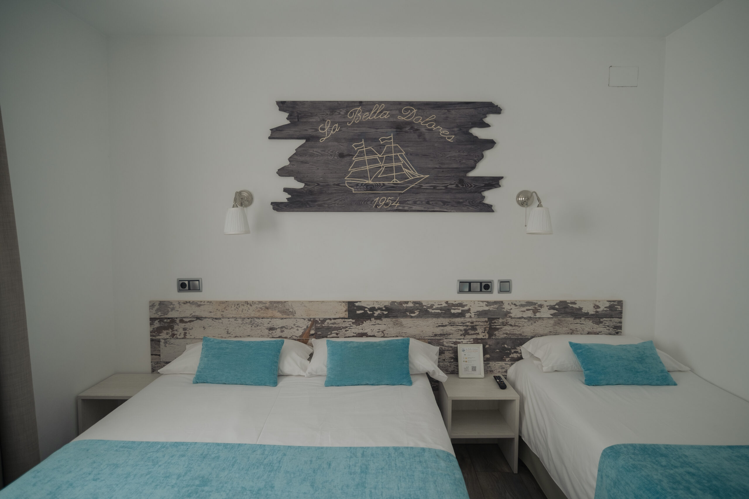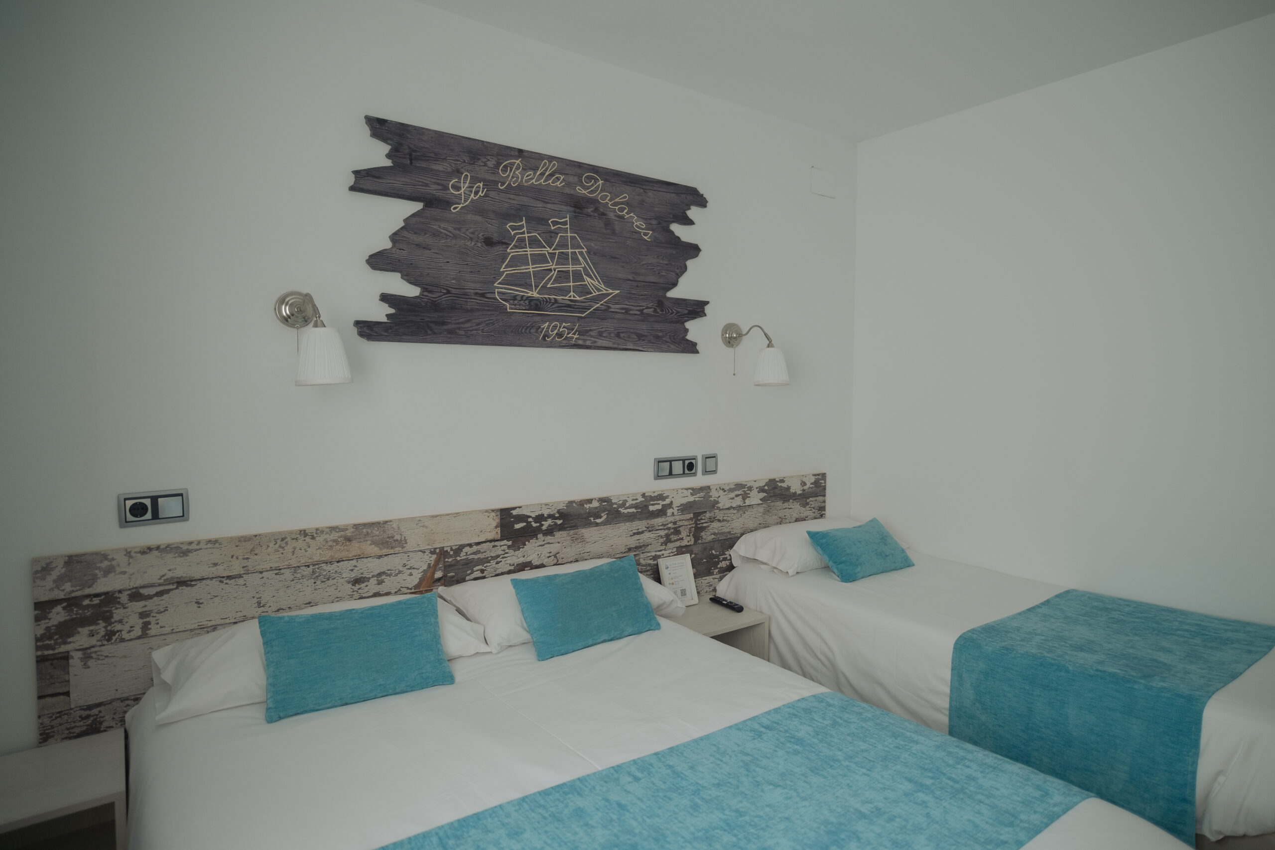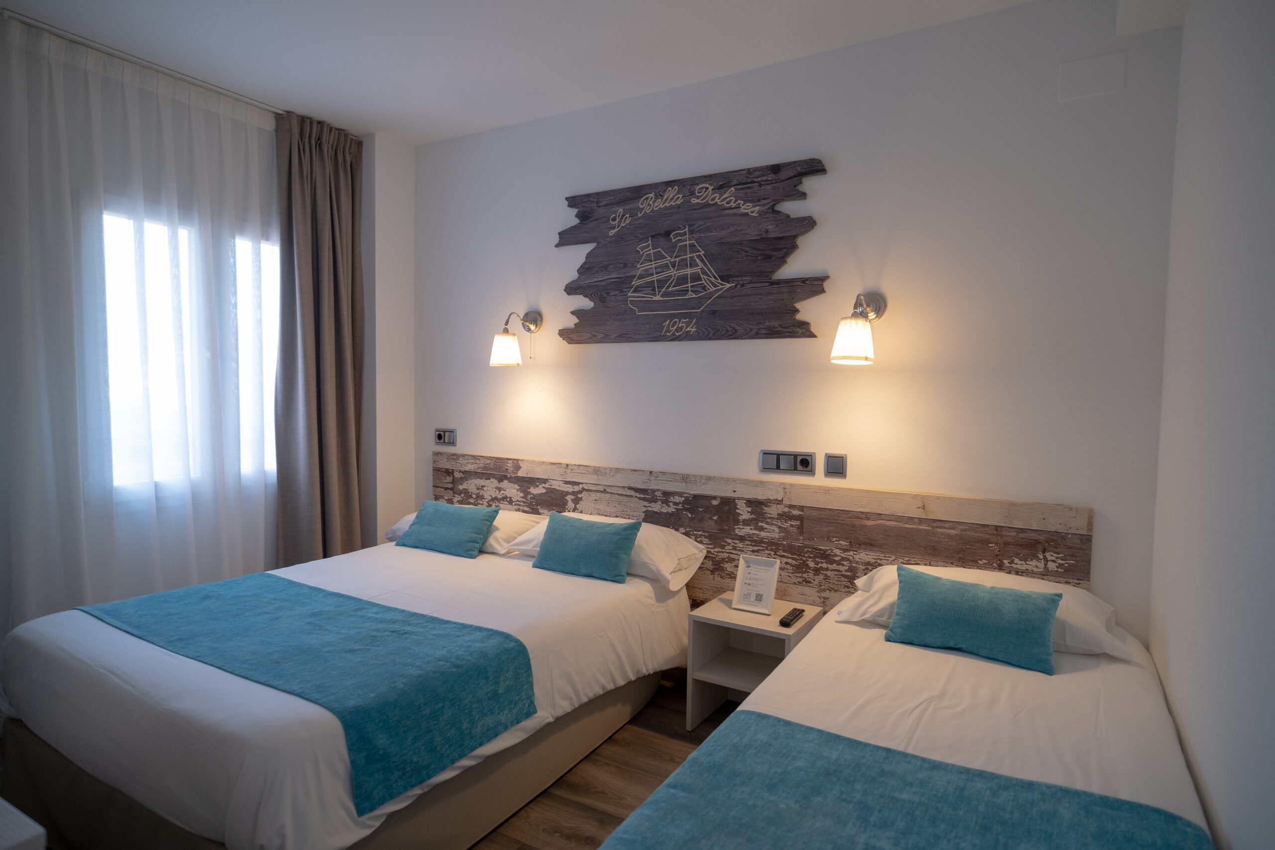 Habitación Familiar con capacidad máxima de 3 personas. Con 1 cama 150×190 cm y 1 cama de 90×190 cm.